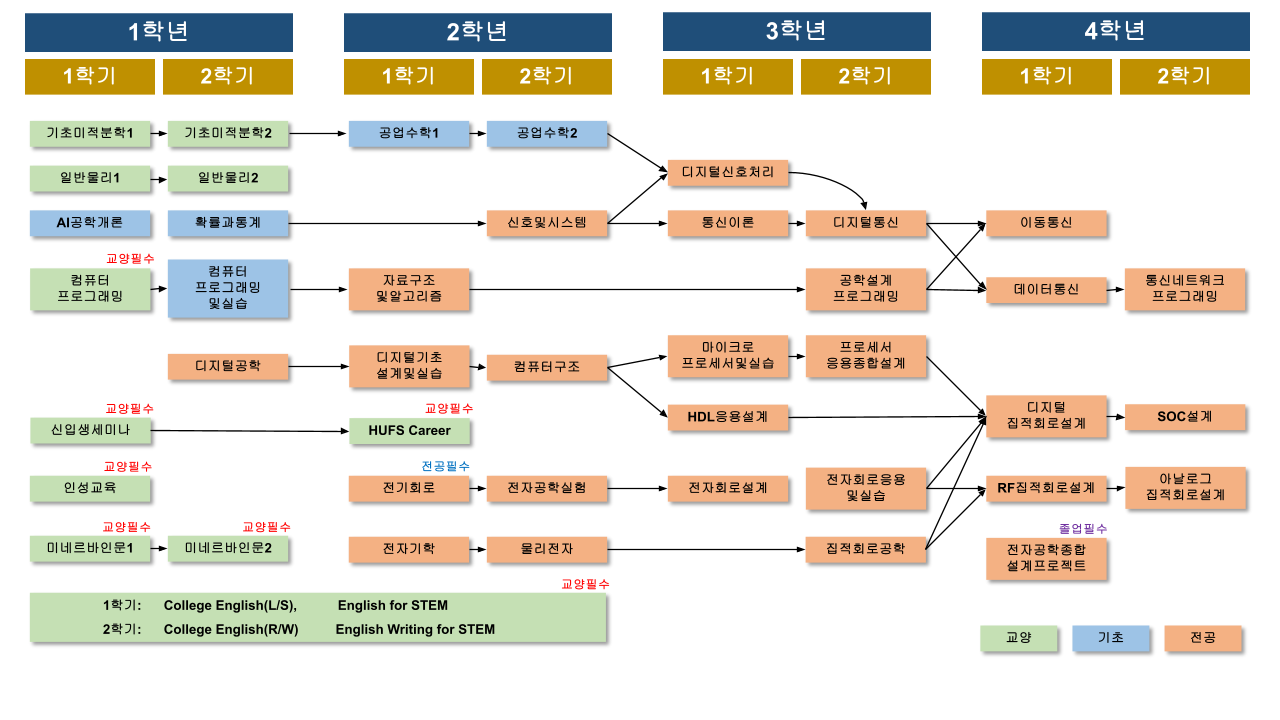 공업수학1, 회로이론, 전자기학, 반도체공학실험1, 디지털논리회로, 자료구조및알고리즘 |